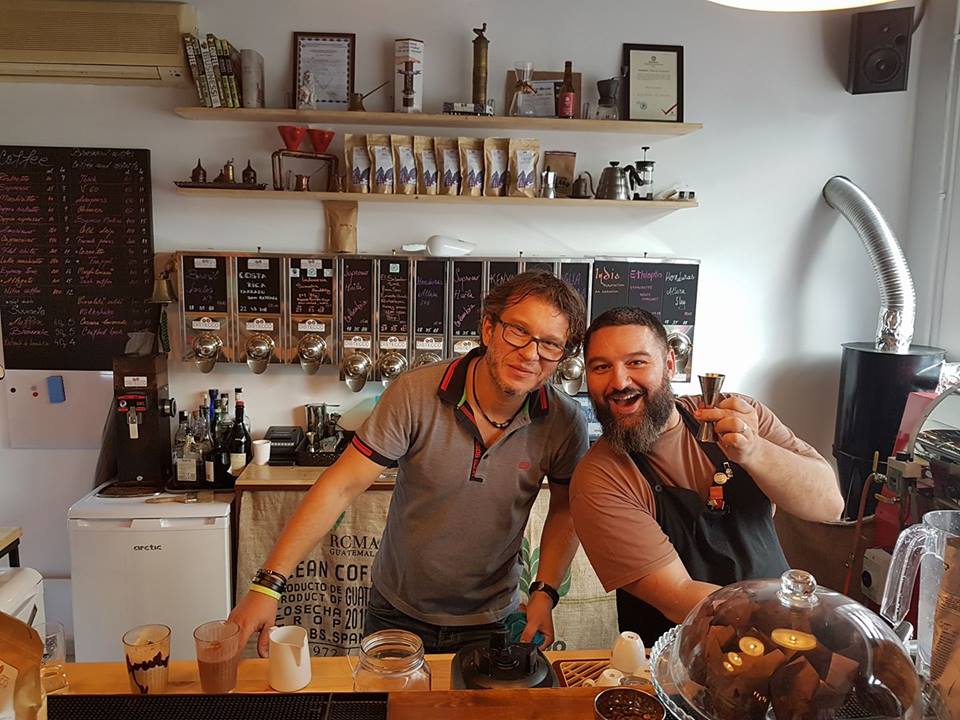 Cum ajungeam in Bucuresti mergeam la prajitorii si cumparam cafea cu care acasa sa experimentez, dupa aproape un an de incercari am gasit Gaggia Classic. A urmat instalarea unui PID si a unei termocuple K, instalarea unui T cu conectori push in si a unui manometru, manufacturarea unui knock box. Dupa alti doi ani a venit randul unei rasnite Mazzer Super Jolly si a unui San Remo Treviso LX ca mai apoi sa urmeze La Spaziale Vivaldi II. In tot acest timp am inceput sa particip ca pasionat de cafea la concursurile organizate de SCAE. Asa s-a intamplat si spre surpriza mea sa castig in 2014 campionatul national de degustat cafea si sa reprezint la Melbourne,Romania. Au urmat jurizarea ca technical judge a etapei regionale de World Barista Chamionship de la Constanta apoi sensory judge la regionala de WBC de la Bucuresti si judge sensory la nationalele WBC din 2015.